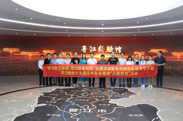 为推动机构编制系统青年干部深入学习贯彻习近平新时代中国特色社会主义思想和党的十九届五中全会精神,激励青年干部增强改革创新意识、勇于担当作为,11月18日至19日,省委编办机关团支部、办年轻干部理论学习小组会同泉州市委编办、晋江市委编办联合开展“学习晋江经验、助力改革创新”主题团日活动暨机构编制部门青年干部学习党的十九届五中全会精神“三级联动”活动。