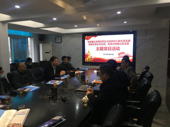为进一步加强学习交流,提升支部党建工作水平,近日,政研处与创研中心联合党支部和监督处党支部共赴省海洋预报台开展“携手抓党建,交流促进步”主题党日活动。