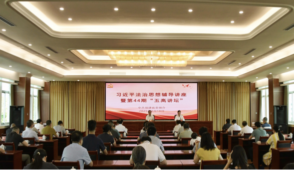 8月18日下午,省委编办举办习近平法治思想辅导讲座暨第44期“五高讲坛”,邀请省人大常委会委员、监察和司法委员会主任委员王敏夫为全办干部职工授课。省委组织部副部长、省委编办主任周青松主持。